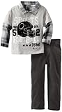 Grey pullover with sports football screenprint design on front and mock check shirt attached underneath matching pant set ...Read